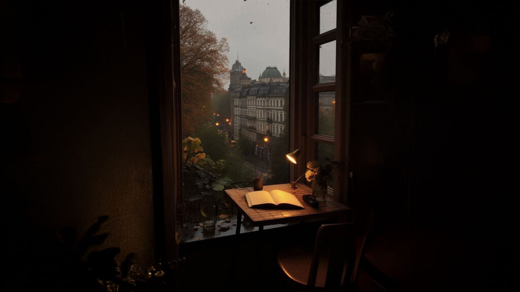 Wszystko jest ciche: łazienka, kuchnia przedpokój, trzy dalsze pokoje, nie tak jak we wspólnych mieszkaniach: hałas, rozpusta, kazirodztwo pozbawionych zasad, od dawna już niekontrolowanych ciał, myśli i pragnień; gdzie po wszystkich kątach powstają niedozwolone stosunki, nieprzyzwoite przypadkowe rzeczy, nieślubne dzieci i gdzie wciąż dzieje się nie tak, jak w niedzielę na Twoich cichych, pustych przedmieściach, lecz jak na dzikich, przeludnionych przedmieściach, pozbawiających tchu w jakiś nieustanny sobotni wieczór